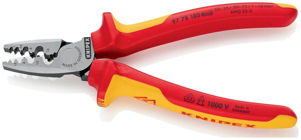 Produktinformationen "Aderendhülsenzange Gesamtlänge 180 mm 0,25 - 16,0 (AWG 23 - 5) mm poliert Mehrkomponenten-Hüllen VDE"