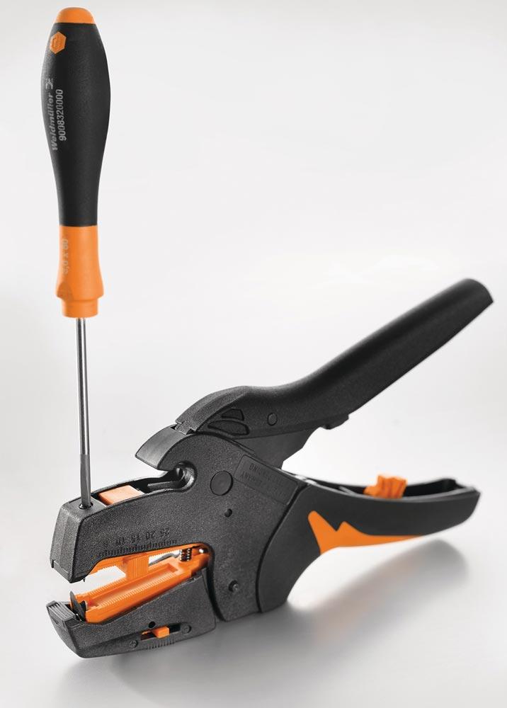 zum Abisolieren und Schneiden von feindrähtigen und massiven Leitern mit PVC-Isolation · verarbeiten von Mehrfachleitern · bei dünnen Flachbandleitern sogar mehrere Leiter in einem Arbeitsgang · doppelt isolierte Kabel in 2 Arbeitsgängen ohne besondere Einstellung · automatisches Öffnen der Klemmbacken nach dem Abisoliervorgang · sie verfügen über einen innenliegenden Seitenschneider bis max. 6 mm² · Gehäuse aus glasfaserverstärktem Kunststoff · die Griffschalen sind abnehmbar · Messerkasetten austauschbar