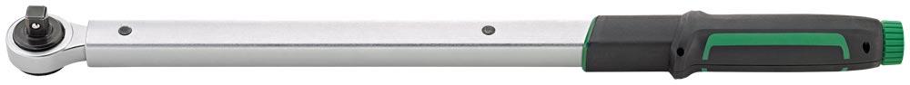 mit fest eingebauter Feinzahnknarre · für den kontrollierten Rechtsanzug · auslösend · schnelle Einstellung durch Schnellverstellung · Doppel-Stopp-Signal · sehr gut ablesbare Doppelskala mit farblicher Unterscheidung von Nm/ft·lb bzw. ft·lb/in·lb · 2-Komponentengriff (resistent gegen Öle, Fette, Kraftstoffe, Bremsflüssigkeiten und Skydrol) · nach Entlastung sofort wieder funktionsbereit ∙ Genauigkeit ± 4 % Toleranz von eingestelltem Wert