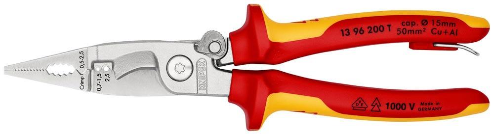 Elektroinstallationszange Länge 200 mm VDE verchromt Mehrkomponenten-Hüllen mit Öffnungsfeder mit Befestigungsöse