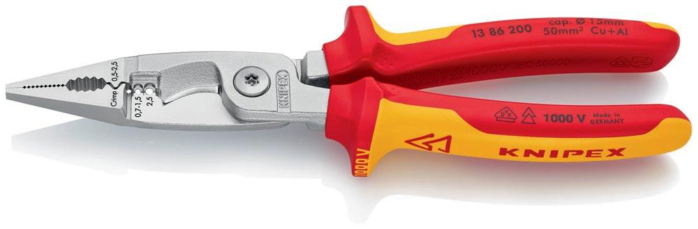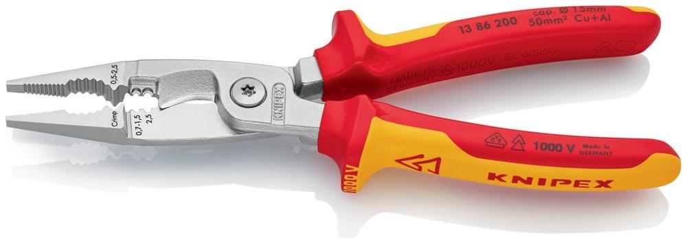 Elektroinstallationszange Länge 200 mm VDE verchromt Mehrkomponenten-Hüllen ohne Öffnungsfeder