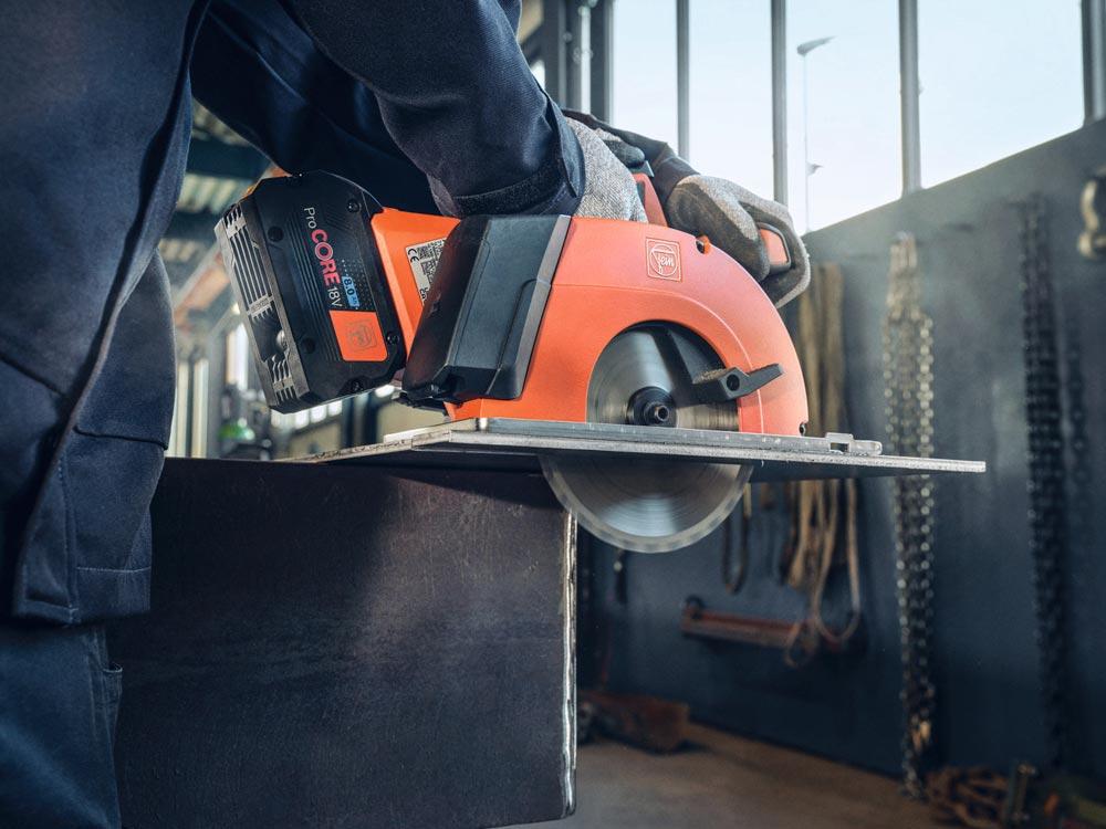Leistungsstarke Akku-Metallkreissäge für schnelle, präzise Kaltschnitte in Bleche, Rohre und Profile bis 57 mm Schnitttiefe ∙ Gerade, lange Schnitte dank Führungsschienenadapter - kompatibel zu Führungsschienen von Makita, BOSCH, Festool, Mafell ∙ Kaltschnitte für nahezu funken- und gratfreie Schnitte ∙ Schließzeit Schutzhaube < 0,3 s auch nach 50 000 Zyklen ∙ Elektronischer Anwenderschutz: Wirksame Bremse (0,2 s), Temperaturabschaltung zur Vermeidung dauerhafter Schäden an Maschine und Akku, Wiederanlaufschutz, Totmannschalter ∙ COOLPACK 2.0-Technologie sorgt für eine um 135 % längere Akkulebensdauer ∙ Maximaler Arbeitsfortschritt mit AMPShare 18 V ProCORE Akkus ∙ Hitze-, kratz- und stoßfestes Gehäuse aus Aluminiumdruckguss