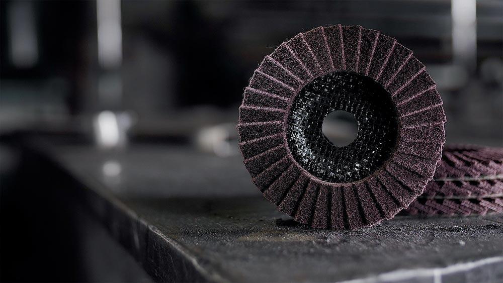 Vlies · speziell geeignet für das Edelstahlfinish · entfernt Grate, Schweißnähte und Kratzer von Edelstahl-Werkstücken · geht schonend mit dem Material um und hinterlässt nach dem Finish eine perfekte Oberfläche mit gleichmäßigem Schliffbild · Bohrung 22,23 mm Ø