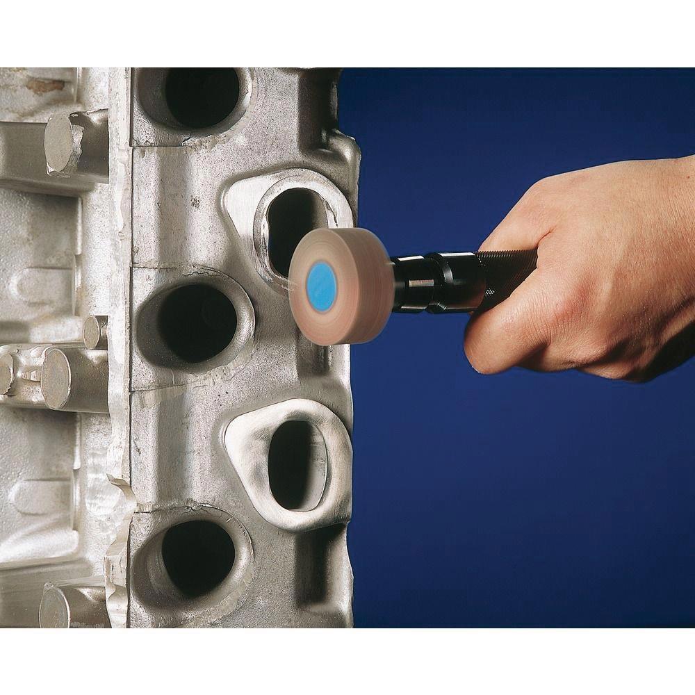 · Vorteile: Gleichbleibend hoher Materialabtrag über die gesamte Standzeit, da stetig neues, aggressives Schleifmittel freigesetzt wird. Optimale Konturenanpassung durch hohe Flexibilität. Stirnseitiger Einsatz sehr eng an Kanten und in Winkeln möglich durch flache Gießkernkonstruktion.