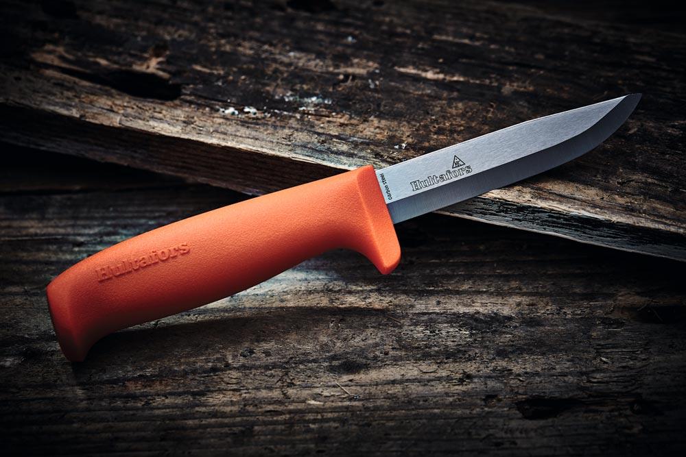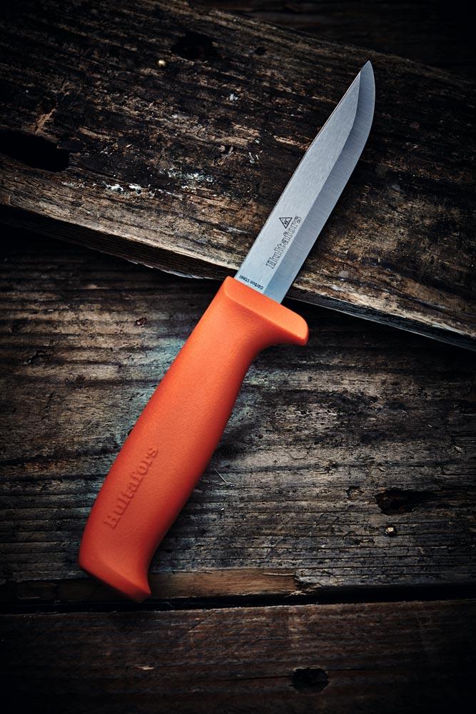 Messer aus japanischem Messerstahl ∙ Klinge aus 2,5 mm starkem Kohlenstoffstahl der Härte 58-60 HRC ∙ In mehreren Schritten geschliffene und abschließend auf Leder abgezogene Schneide ∙ Schaft und Scheide aus besonders schlagfestem PP-Kunststoff ∙ Befestigung der Scheide entweder am Gürtel oder an Knöpfen