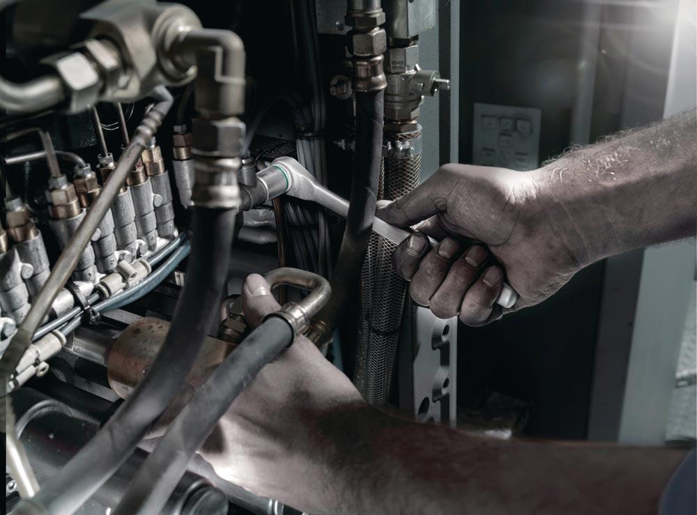 10 mm (3/8 ″)-Vierkantantrieb · robuste, feinverzahnte, geschmiedete Vollmetallknarre · aus legiertem Werkzeugstahl · Nussverriegelungsfunktion mit Druckknopfauslösung · schlanke Bauform · langer Hebel · (optimal geeignet auch für sehr beengte Arbeitsräume) · Rückschwenkwinkel 5°