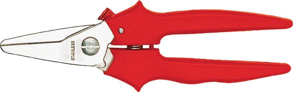 Schneiden aus Edelstahl rostfrei · für Industrie, Handwerk und Haushalt · schneidet Papier, Pappe, Stoff, Feinblech, Zweige, Leder, Teppichboden usw. · schlagfeste Kunststoffgriffe