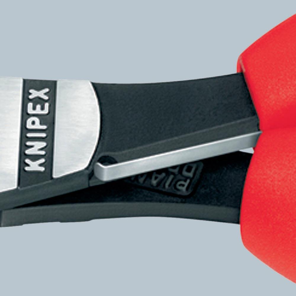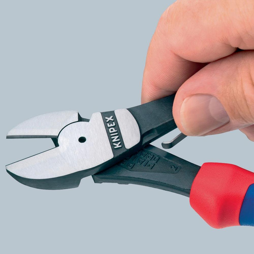 20 % Kraftersparnis gegenüber herkömmlichen Seitenschneider · mit Öffnungsfeder · Schneiden zusätzlich induktiv gehärtet, Schneidenhärte ca. 64 HRC · Chrom-Vanadin-Hochleistungsstahl, geschmiedet, mehrstufig ölgehärtet