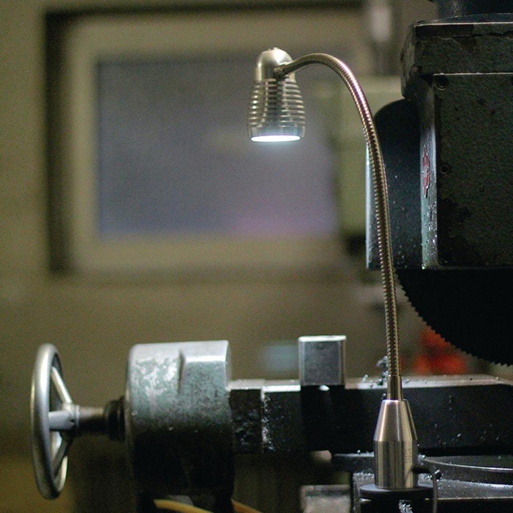 Hochleistungs-LED im Aluminiumgehäuse, mit Flexwelle und gummiummanteltem Magnetfuß · blend- und flackerfrei · gleichmäßige, reflexionsarme 90° Ausleuchtung, 90cm Lichtkegel, bei 40cm Entfernung · Gesamtlänge 600mm · Diese Leuchte enthält eingebaute LED-Leuchtmittel. Die eingebauten Leuchtmittel können nur durch den Hersteller ausgetauscht werden.