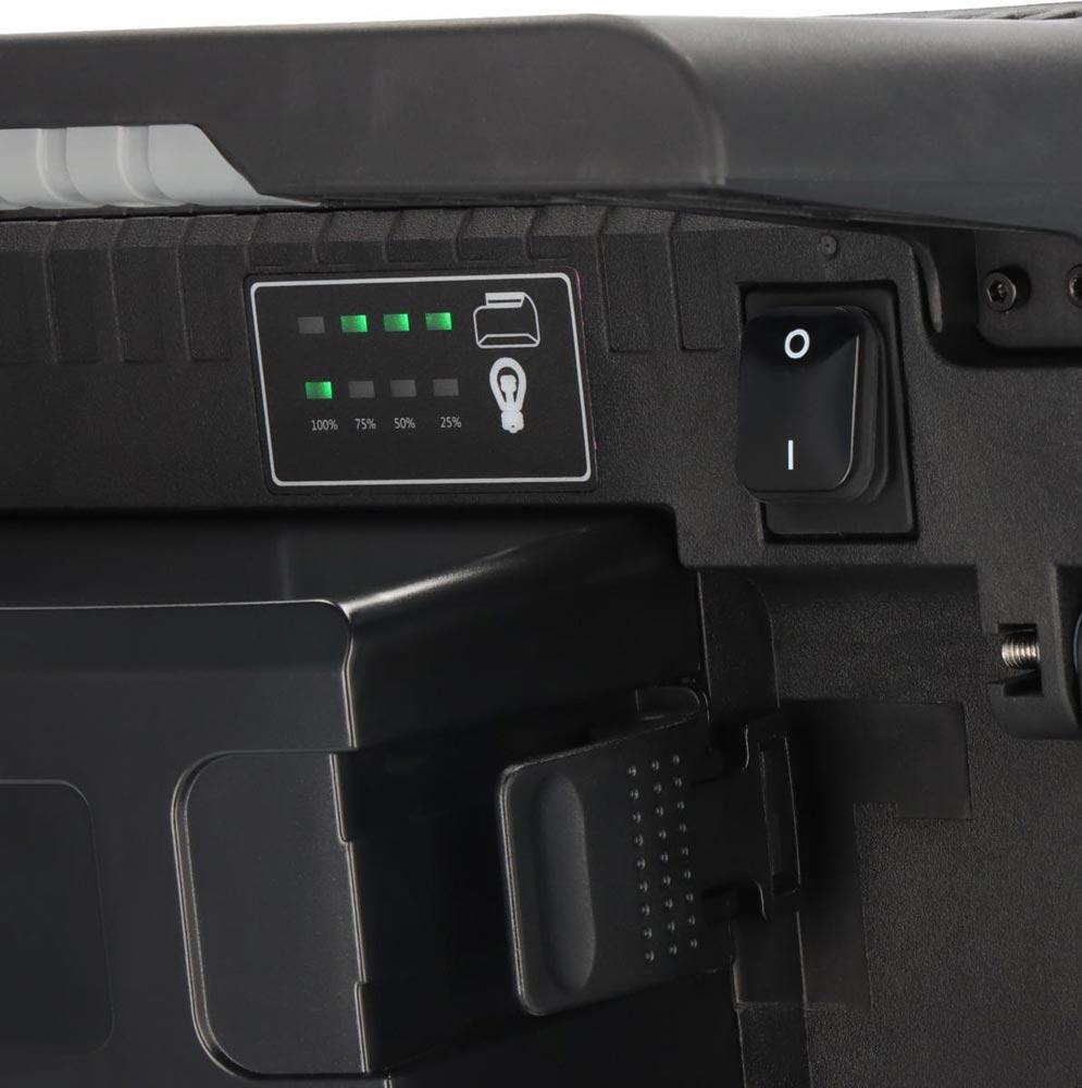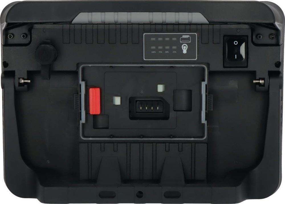 kompatibel mit verschiedenen 18V Akkus (verschiedene Ah Klassen) der Powertool-Hersteller Bosch Professional, Makita, Dewalt, Milwaukee, Metabo CAS · mehr Flexibilität durch Hybridtechnik: Akku- und Netzbetrieb möglich, automatische Umschaltung von Netz auf Akku bei Stromausfall · Plug-In-Kabelanschluss · Schalter mit Funktion: 100% - 75% - 50% - 25% Licht · Leuchtdauer in Abhängigkeit des verwendeten Akkus, ca. 12 min/1 Ah bei 100 % Lichtleistung · Akku-Zustandsanzeige · Akkus sind vor Tiefenentladung und Überhitzung geschützt · abnehmbare Akku Schutzhaube · LED Strahler mit Kippschutz, schützt Linse und Gehäuse des Strahlers · standfestes Gehäuse · ergonomischer Griff · Ein/Aus Schalter · Stativmontage möglich · Einsatz für den rauen Betrieb