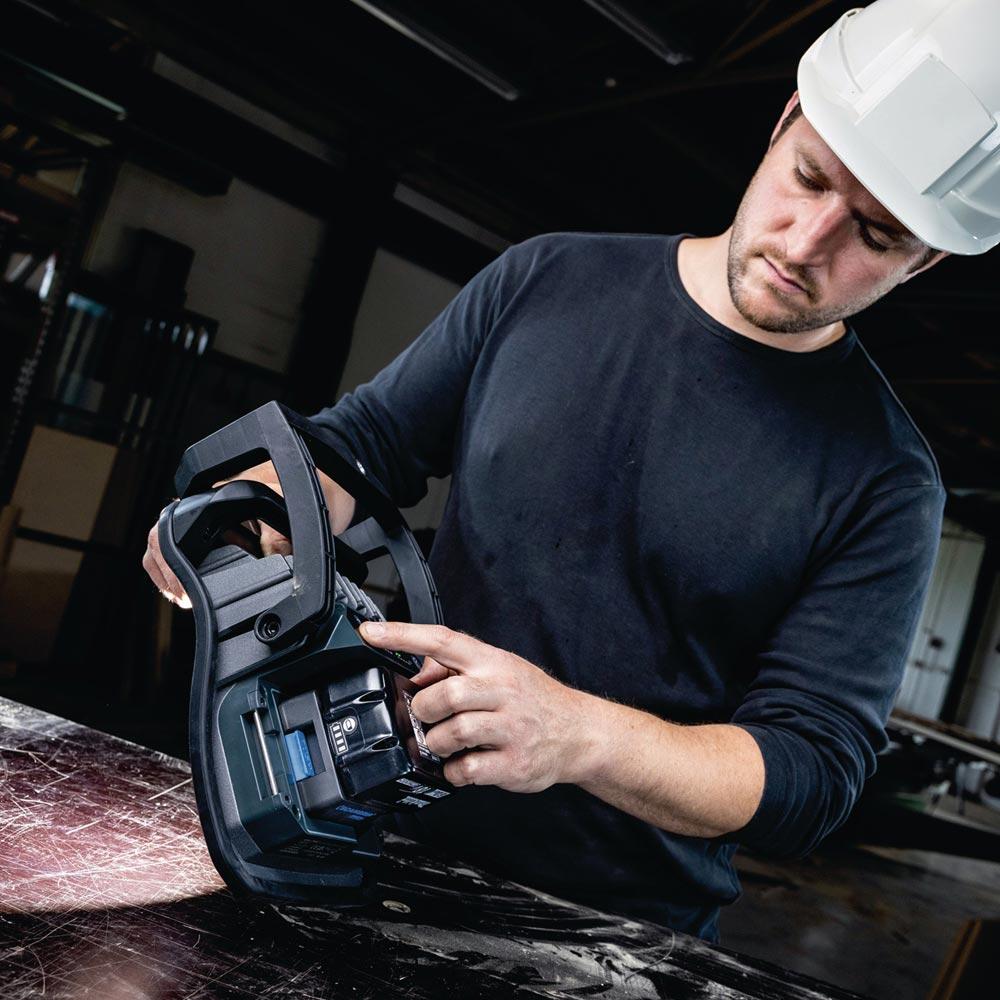 hocheffiziente E COB-LED-Arbeitsleuchte mit 4000 Lumen für 18-V-Akkupacks · extrem robuste akkubetriebene Arbeitsleuchte · Dimmfunktion · Anzeige für Akkustand und Lichtleistung · eingebaute Powerbank · Tragegriff und Stellfuß für flexible Ausrichtung und Direktmontage am SCANGRIP-Stativ · Schutzart IP65