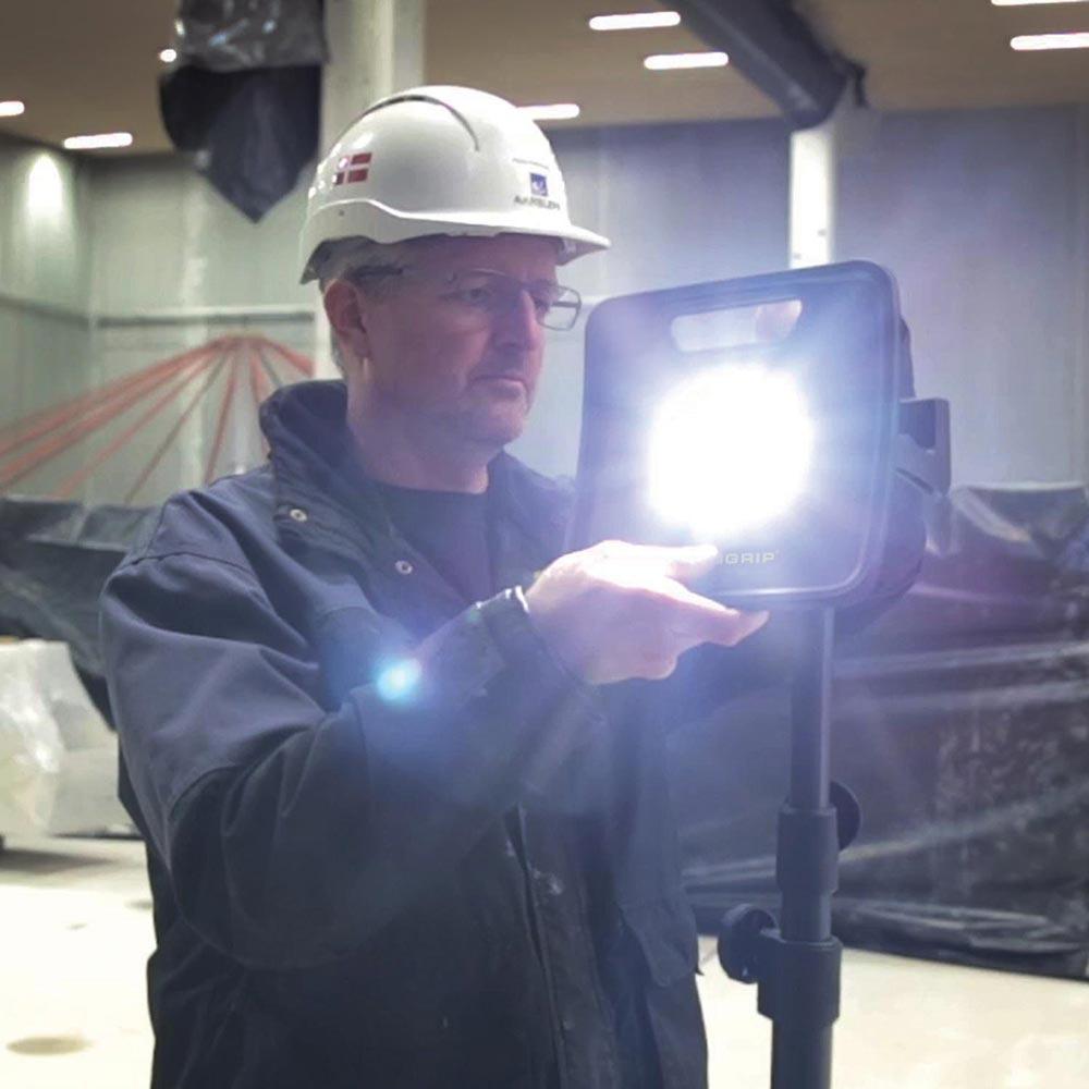 neue, leistungsstarke COB Leuchte mit modernster LED-Technik für den professionellen Einsatz · NOVA-Gehäuse aus Alu-Spritzguss, extrem robust und widerstandsfähig auch gegenüber starken Stößen, Schlägen und Vibrationen· 5-stufige Dimmer-Funktion · mit integriertem Tragegriff und Stellfuß für Direktmontage an SCANGRIP TRIPOD-Stativ · wasserdicht (IP67) für alle Arbeitsumgebungen · CRI-Wert nahezu Tageslichtqualität · Diese Leuchte enthält eingebaute LED-Leuchtmittel. Die eingebauten LED-Leuchtmittel können nicht ausgetauscht werden