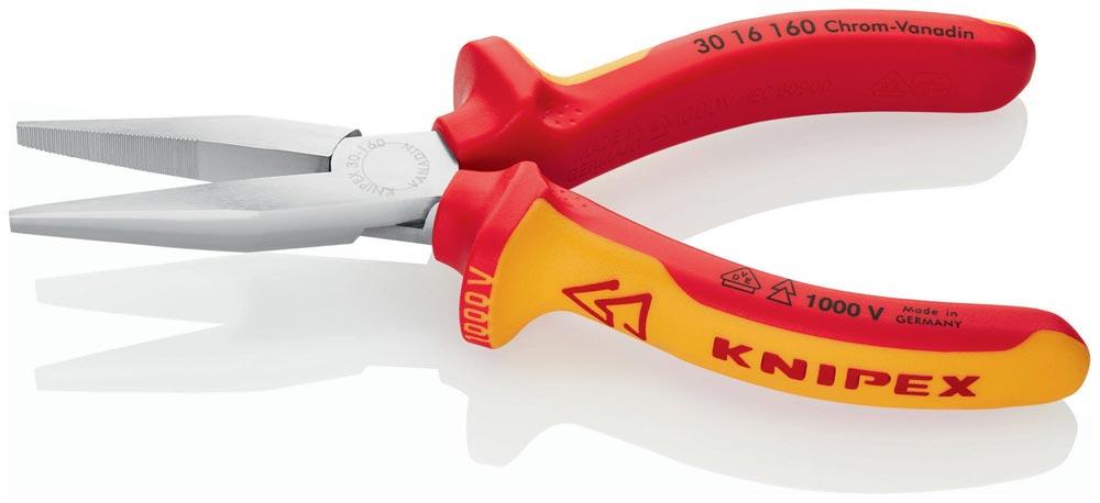 Produktinformationen "Langbeckzange Gesamtlänge 160 mm Form 1 Kopf verchromt lang, flach VDE Mehrkomponenten-Hüllen"