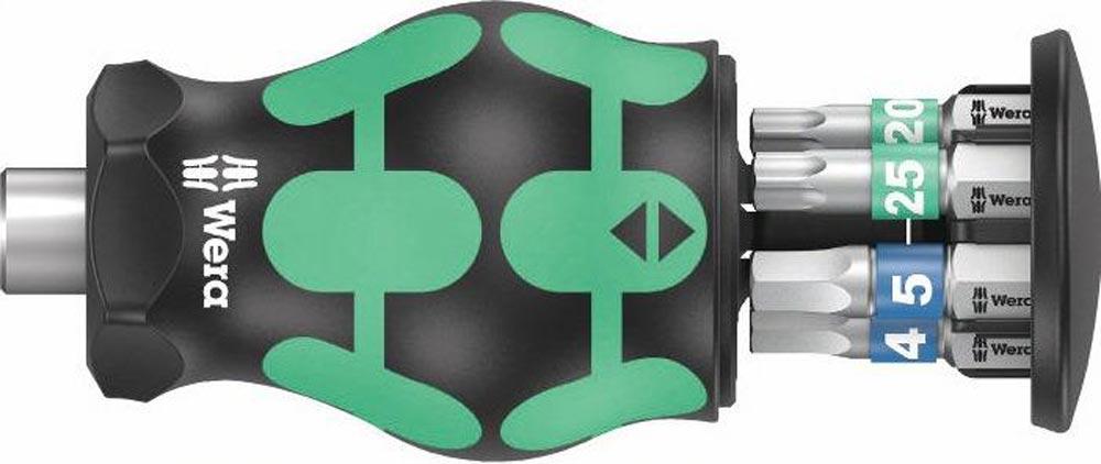 mit 2-Komponenten-Kraftform-Griff · mit integriertem Bit Magazin · Bitaufnahme mit starkem Dauermagnet · bestückt mit BiTorsions Bits zähhart · Bits mit Take it easy Farbleitsystem