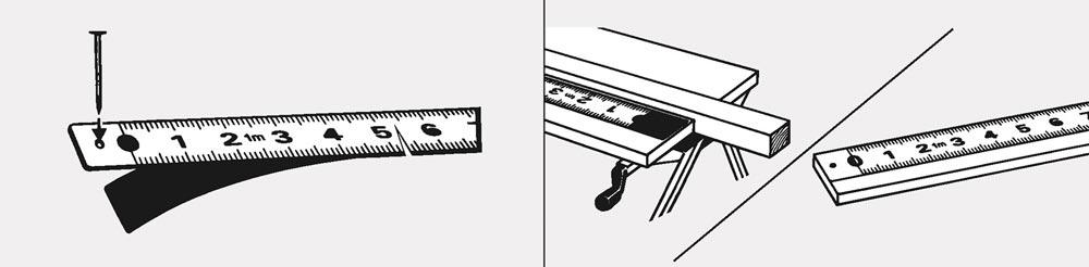 selbstklebend · Stahlband · mit Selbstklebefolie auf der Rückseite zur Befestigung auf Oberflächen · Länge kann nach Bedarf gekürzt werden · Anbringung auf Wandtafeln, Zeichentischen, Werkbänken oder Werkzeugen möglich (horizontal oder vertikal) · Skala von links nach rechts