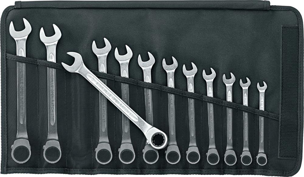 Maulringratschenschlüsselsatz 17/12 12-teilig Schlüsselweiten 8-19 mm umschaltbar