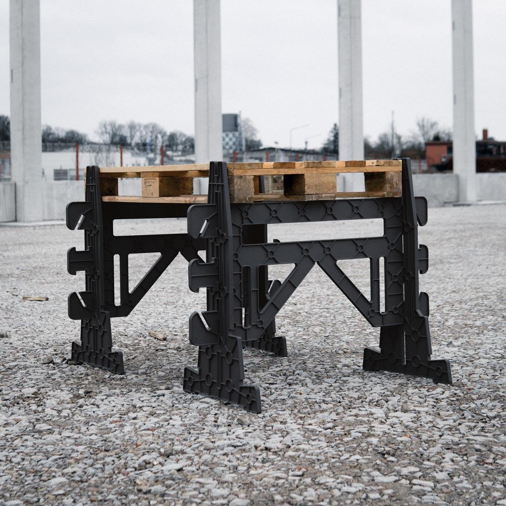 Multifunktionales Montagebocksystem mit 13 Funktionen in einem System ∙ Einfaches Stecksystem ermöglicht eine schnelle Montage und einfachen Umbau ohne zusätzliches Werkzeug ∙ Viele Aussparungen um Werkzeuge oder Material sicher abzulegen ∙ Montagebock ist 4-fach höhenverstellbar im 190 mm Raster - ideal geeignet zum ausgleichen von Treppenstufen ∙ Mittelteil um 180° drehbar und als Montageschablone nutzbar um z.B. winkelige Bauteile miteinander zu verleimen ∙ Auch als Lagerbock für große Platten, Türen oder Glas einsetzbar ∙ Hergestellt aus schlagzähem PA-GF30-Kunststoff für hohe Robustheit und Langlebigkeit ∙ Belastbarkeit bis 500 kg