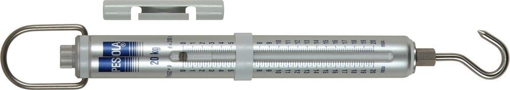 metrisch · genaue handliche Federwaage mit robustem, eloxiertem und abriebfreiem Aluminiumrohr sowie langer Präzisionsskala mit hoher Auflösung · Tara- und Nullstellvorrichtung sowie dreh- und schwenkbarer Aufhängebügel · Haken dreh- und schwenkbar, sowie durch verschiedenes Zubehör austauschbar · Aufhängeelemente aus Inox · Schleppzeiger (z.B. für stehende Anzeige bei Zerreissproben bis maximal 30 kg) und handlicher, abnehmbarer Handgriff im Lieferumfang enthalten · Messmittel zur Gewichtsbestimmung und Zugkraftmessung