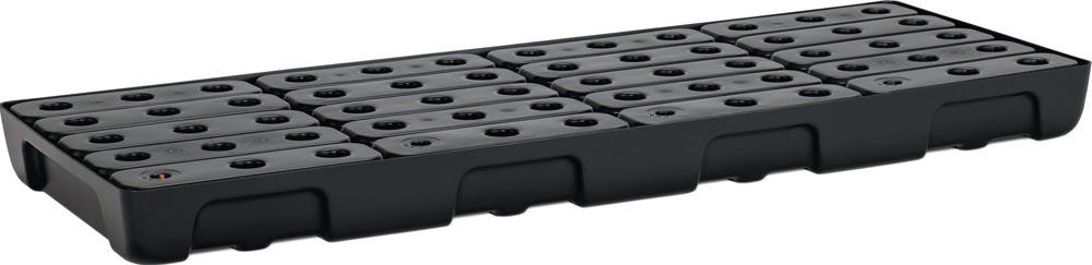 für Kleingebinde · zur sicheren und vorschriftsmäßigen Lagerung gewässergefährdenden Flüssigkeiten der GHS-Kategorien 1-4 · aus HD-Polyethylen · sehr beständig gegen Laugen, Öle und Säuren · mit PE-Rost · stapelbar · konzipiert für verschiedene Regaltiefen · mit DIBT-Zulassung Nr. Z-40.22-601