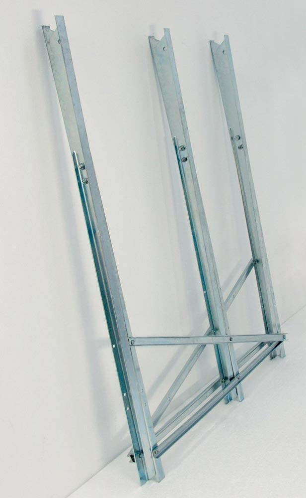 aus stabilem, standfestem Stahl-Winkelprofil · hoher Rostschutz durch galvanisch verzinkte Oberfläche · rutschsichere, verzahnte Auflagefläche · kompakt zusammenfaltbar