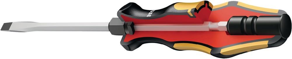 zum Schrauben, Meißeln und Stemmen · mit Mehrkomponenten-Kraftform-Griff mit Abrollschutz · (Größe 4/200 mit 1-Komponenten-Kraftform-Heft) · durchgehende 6kant-Klinge mit Schlagkappe · Klinge aus legiertem Werkzeugstahl mit BlackPoint-Spitze · Schlüsselhilfe · für Schrauben mit Kreuzschlitz (PZD)
