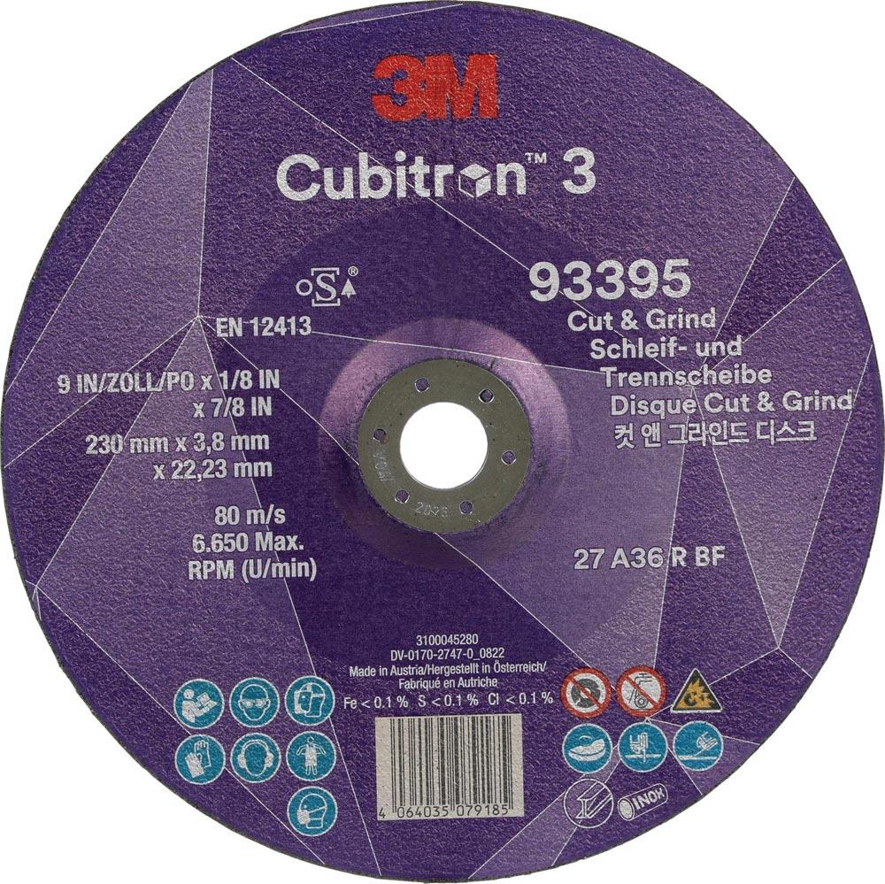 überarbeitetes 3M präzisionsgeformtes Korn · kann sowohl als Schrupp- als auch als Trennscheibe verwendet werden - ideal zum Schneiden, Kehlnahtschleifen, Ausfugen und mehr · dank einer flachen, verstärkten Innenfläche kann sie die Objekte formen oder schleifen · dünne Außenkante zum Herstellen von senkrechten Schnitten und Ausfräsungen · die Struktur ist so geschaffen, dass sie beim Schleifprozess kontinuierlich brechen und stets viele scharfe Schneidekanten bilden · glatte, scharfe Kanten tragen dazu bei, ein Schleifmittel zu schaffen, das schneller schneidet, kühler schleift und viel länger hält als herkömmliche Schleifmittel · Bohrung 22,23 mm Ø