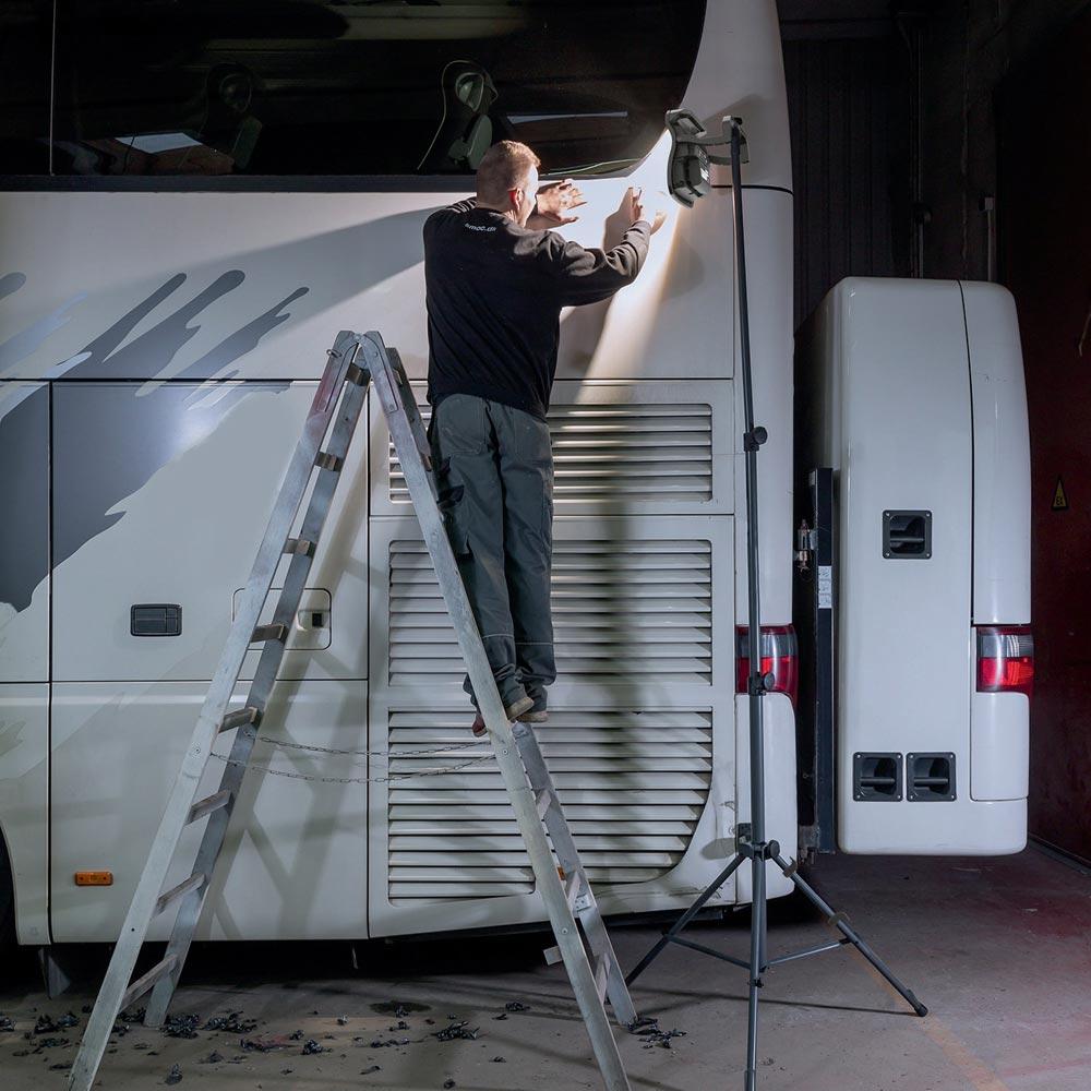 für stationäre Aufstellung · für Arbeitssituationen, die eine feste Beleuchtung aus unterschiedlichen Höhen oder Winkeln erfordern · robuster, pulverbeschichteter Stahl · mit den Clips an den Stativbeinen kann das Kabel fixiert werden, um die Sicherheit zu erhöhen