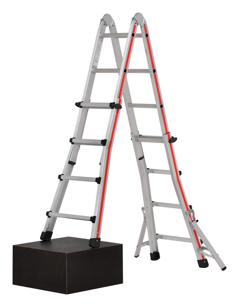 ∙ Vielseitig verwendbar als Anlege- oder Stehleiter ∙ Leiter in 280-mm-Schritten höhenverstellbar