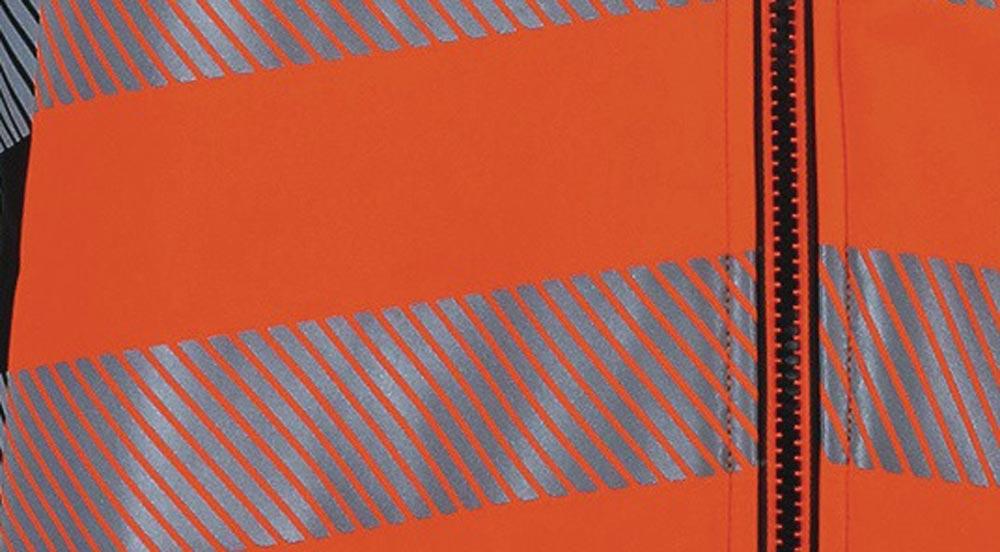 EN ISO 20471 Kl. 2, EN ISO 13688:2013 · 100% Polyester · segmentierte Reflexstreifen · Schulterreflexstreifen · Wassersäule 8000 mm · Atmungsaktivität 1000 mvp