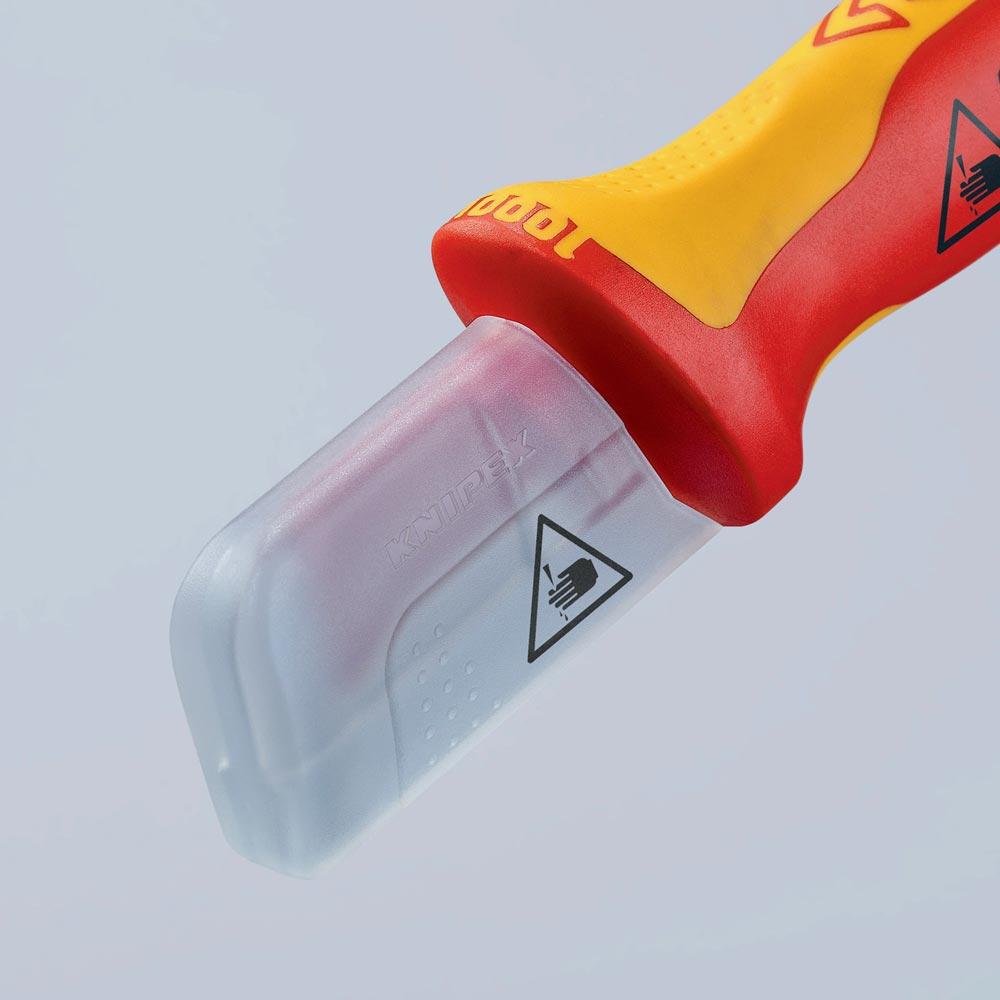 VDE-isoliert bis 1000 V · gefertigt gem. DIN EN/IEC 60900, stückgeprüft · stabile, feststehende Hakenklinge und transparenter Schutzkappe · Klinge: Chirurgiestahl, rostfrei, luftgehärtet