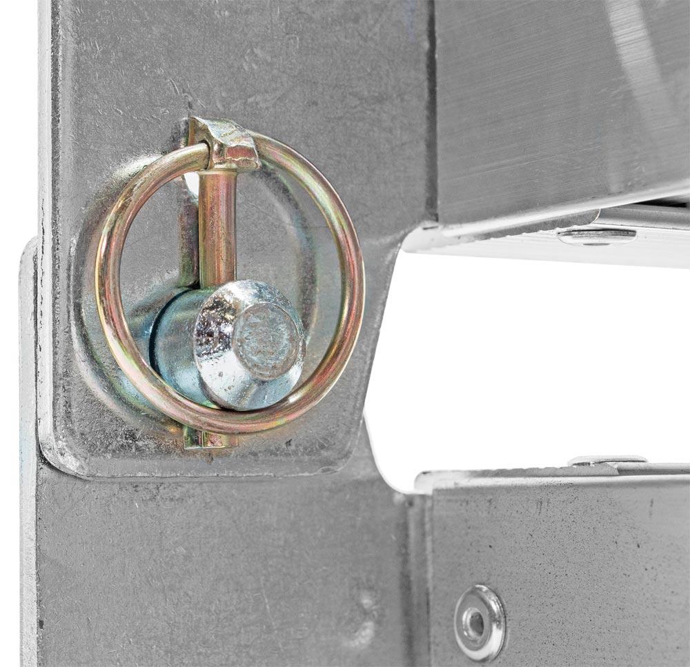 Platzsparendes Transportieren und Lagern ∙ Extrem hohe Stabilität für starke Beanspruchung ∙ Schnelle und einfache Verbindung der Einzelelemente ∙ Arretierbare Transportsicherung ∙ Beidseitig stufenlos ausziehbar und mittig teilbar