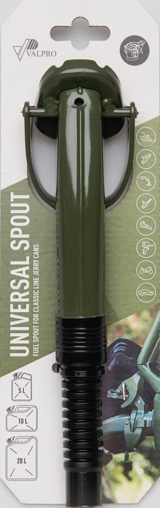 aus lackiertem Metall mit Kunststoffausgussstück · mit integriertem Filter sowie Entlüftungsrohr · für alle Stahlblech-Kraftstoffkanister mit Bajonettverschluss geeignet · Länge 280 mm