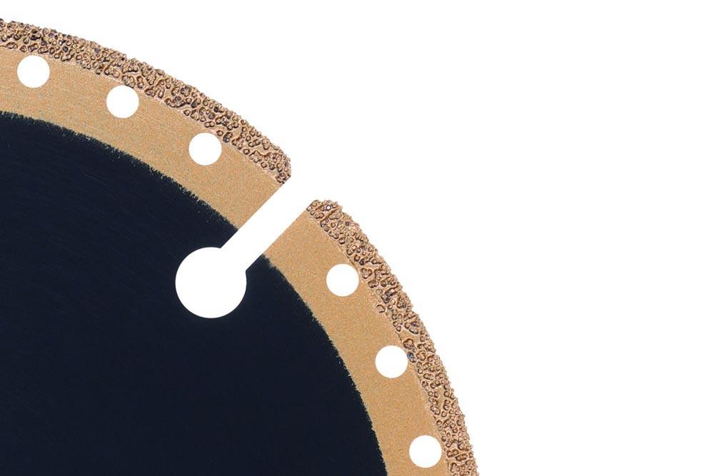 vakuumgelöteter Diamant · für Akku- und Standardwinkelschleifer · ultradünne Schnittkante schont Akku und Maschine · ca. doppelt so viele Schnitte pro Akku-Ladung im Vergleich zu Standardtrennscheiben · geeignet für Eisen und Stahl , Betonprodukte, Baumaterialien, Granit und Naturstein · trocken und nass einsetzbar