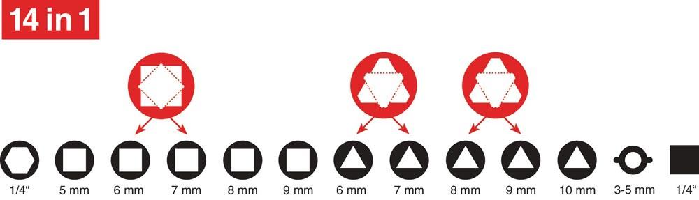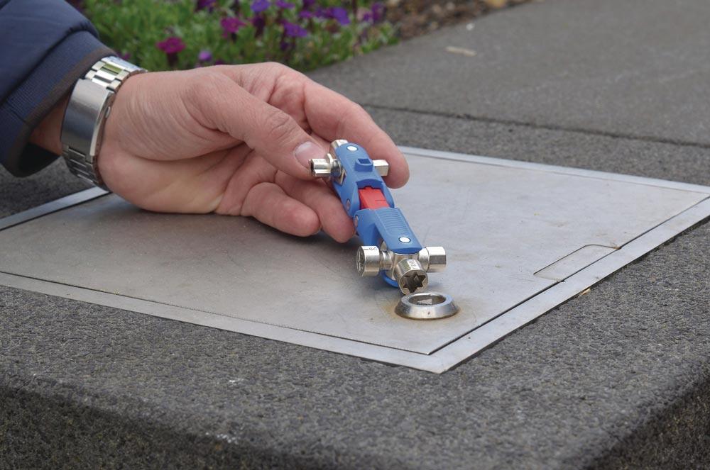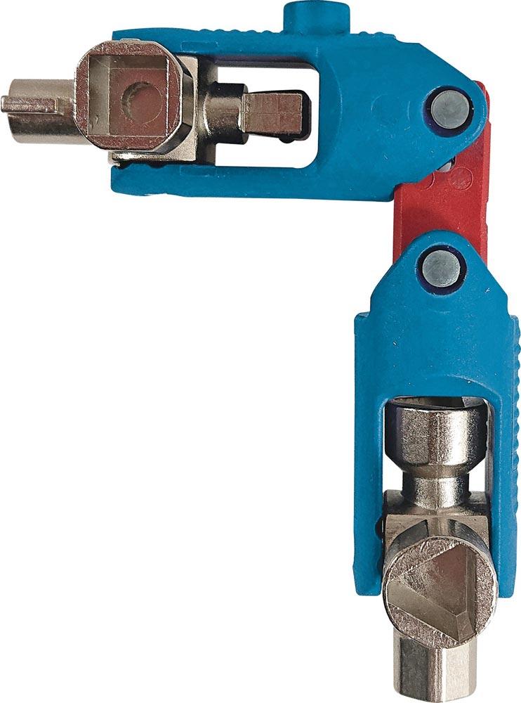 für alle gängigen Schließungen, Schaltschränke, Haupt- und Unterverteilungen, Abfallbehälter, Heizungsentlüftungen usw. · Schwenkarme um 360° drehbar · durch ein neu eingesetztes Gelenk, kann der Universalschlüssel sowohl als T-Griff mit hohem Drehmoment oder in der kompakten, zusammengesteckten Variante eingesetzt werden · Funktionen: