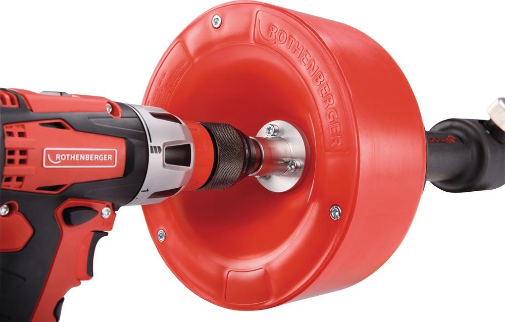 Einsatz mit jedem handelsüblichen Akkuschrauber möglich · Wechsel von Vor- auf Rücklauf möglich, ohne die Motordrehrichtung ändern zu müssen, dadurch schnellere Beseitigung der Verstopfung · die Spirale kann zusätzlich mit 3 verschiedenen Reinigungswerkzeugen kombiniert werden · Spiralen-Feststellmechanismus mit Drehmomentbegrenzung ermöglicht einen optimalen Rücklauf der Spirale · der flexible Schutzschlauch verhindert Verschmutzung der Umgebung mit Spritzwasser · inkl. Zusatzspirale · (ohne Akkuschrauber)