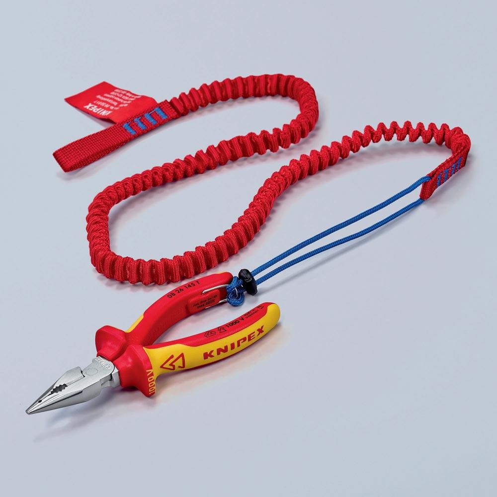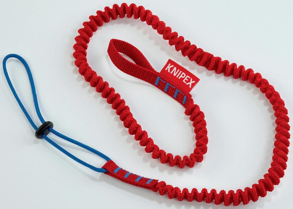 schützt das Werkzeug zuverlässig vor dem Herunterfallen · passend für alle KNIPEX-Zangen mit Befestigungsöse · für Werkzeuge bis 6 kg · extrastarke Fangleine mit flexibler Anbindung · auch Akku-Werkzeuge