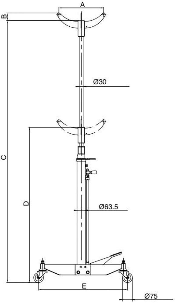 hydraulisch arbeitend · mit Schnellhebesystem · verchromte Kolbenstange und Pumpenkolben (verhindert Rostbildung) · großes Fußpedal · Höhe min./max. 1175 mm/1985 mm · die Getriebeaufnahme kann umgekehrt befestigt werden und mit Hilfe von optionalem Zubehör (Gummi-Sattel BH11500-04) und (Stahl-Sattel BH11500-05) können auch weitere Autoteile wie Auspuffrohre, Kraftstofftanks oder Federaufhängungen abgelegt und transportiert werden - optionales Zubehör auf Anfrage lieferbar