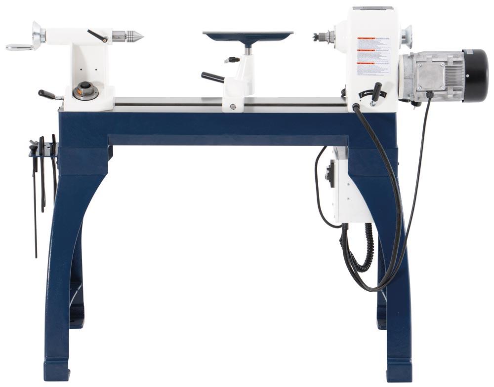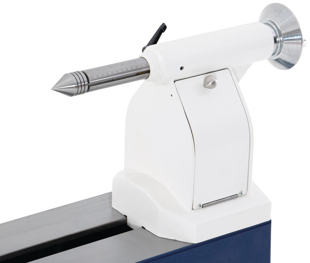 Drechselbank mit stufenloser Drehzahlverstellung über Frequenzumrichter ∙ Bankbett aus massivem Grauguss für hohe Laufruhe ∙ Robuster Reitstock mit Trapezgewinde ∙ Drehbarer Spindelstock ∙ ASR-Ablaufsicherungsnut für maximale Sichereit bei der Spannmittelbefestigung ∙ Flexibles Arbeiten mit mobiler Bedienbox mit Magnethalterung ∙ Bedienbox mit digitaler Drehzahlanzeige und Umschaltung des Rechts-Linkslauf ∙ 24-Schritt-Teileinrichtung der Spindel zur exakten Bearbeitung des Werkstückes