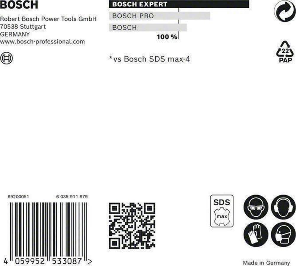 Bosch Carbide-Technologie für langlebiges Bohren von Stahlbeton · dringt effektiv durch die Armierung, sodass man nicht stoppen, neu zielen oder den Bohrer wechseln muss, wenn man auf Stahl stößt · passend für SDS max Bohrhämmer
