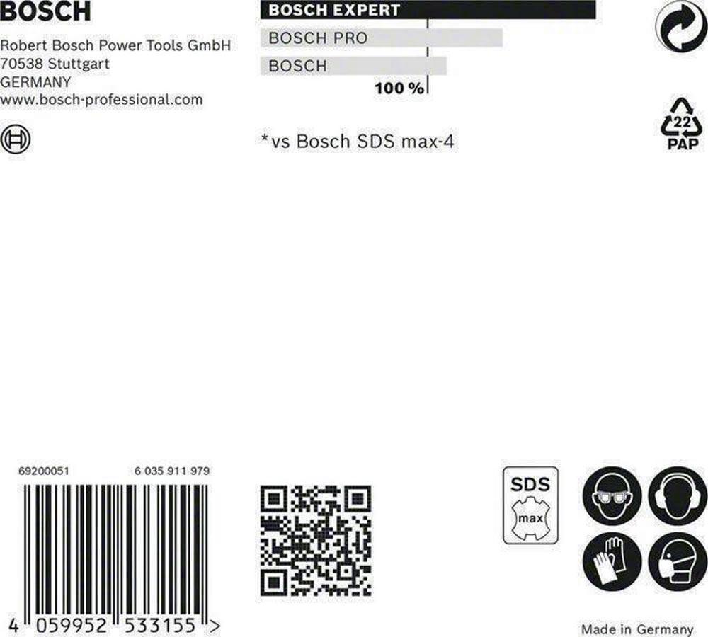 Bosch Carbide-Technologie für langlebiges Bohren von Stahlbeton · dringt effektiv durch die Armierung, sodass man nicht stoppen, neu zielen oder den Bohrer wechseln muss, wenn man auf Stahl stößt · passend für SDS max Bohrhämmer