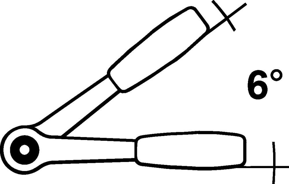 12,5 mm (1/2 ″)-Vierkantantrieb · mit 2 Komponentengriff mit Aufhängeloch · CV-Stahl · Nussverriegelungsfunktion mit Druckknopfauslösung und Einrastautomatik (beim Umschalten rastet der Schalthebel automatisch für Rechts- oder Linksgang ein) · Rückschwenkwinkel 6°