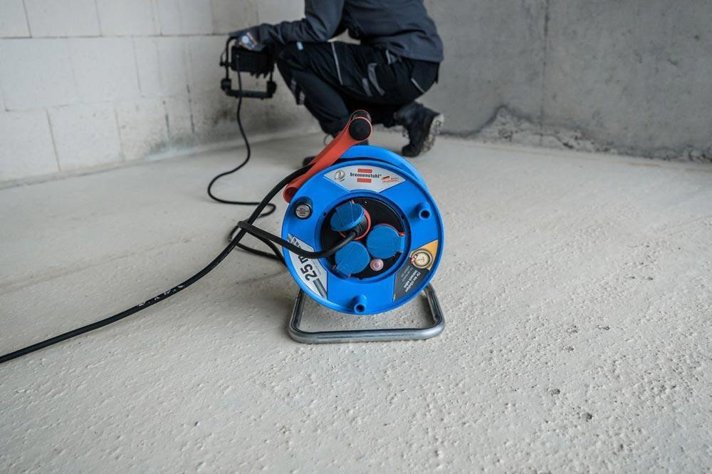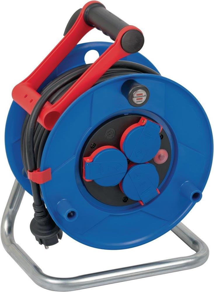 Die Garant IP44 Gewerbe-/Baustellen-Kabeltrommel mit 25m Kabellänge in der Farbe blau von Brennenstuhl überzeugt durch ihre Qualität und Sicherheit in allen Bereichen. Die Kabeltrommel eignet sich ideal für den Baustelleneinsatz und den Einsatz im Freien. Sie überzeugt außerdem durch folgende Eigenschaften Innovativer Tragegriff ″cablepilot″ für die perfekte Kabelführung. Pendelt auf beiden Seiten und ermöglicht bequemes Tragen und Aufhängen RN-Kabel ist zugelassen für erschwerte Baubedingungen nach VDE 0100 Teil 704 Mit Drehgriff für komfortables Aufrollen Schutzart IP44 Kabellänge 25m Kabelbezeichnung H07RN-F 3G1,5 Kabelqualität Gummi-Neopren Kabelfarbe Schwarz Trommeldurchmesser 240mm · Gummikabel H07RN-F