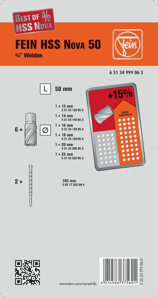 Kernbohrersatz Best Of 8-teilig Ø 12-22 mm HSS Schnitttiefe 50 mm Weldon