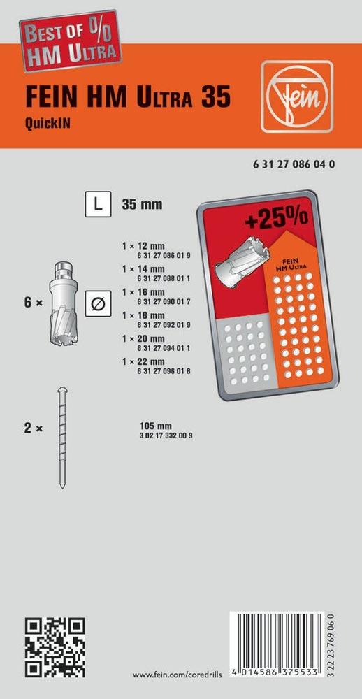 Kernbohrersatz Best Of 8-teilig Ø 12-22 mm Hartmetall Schnitttiefe 35 mm QuickIN