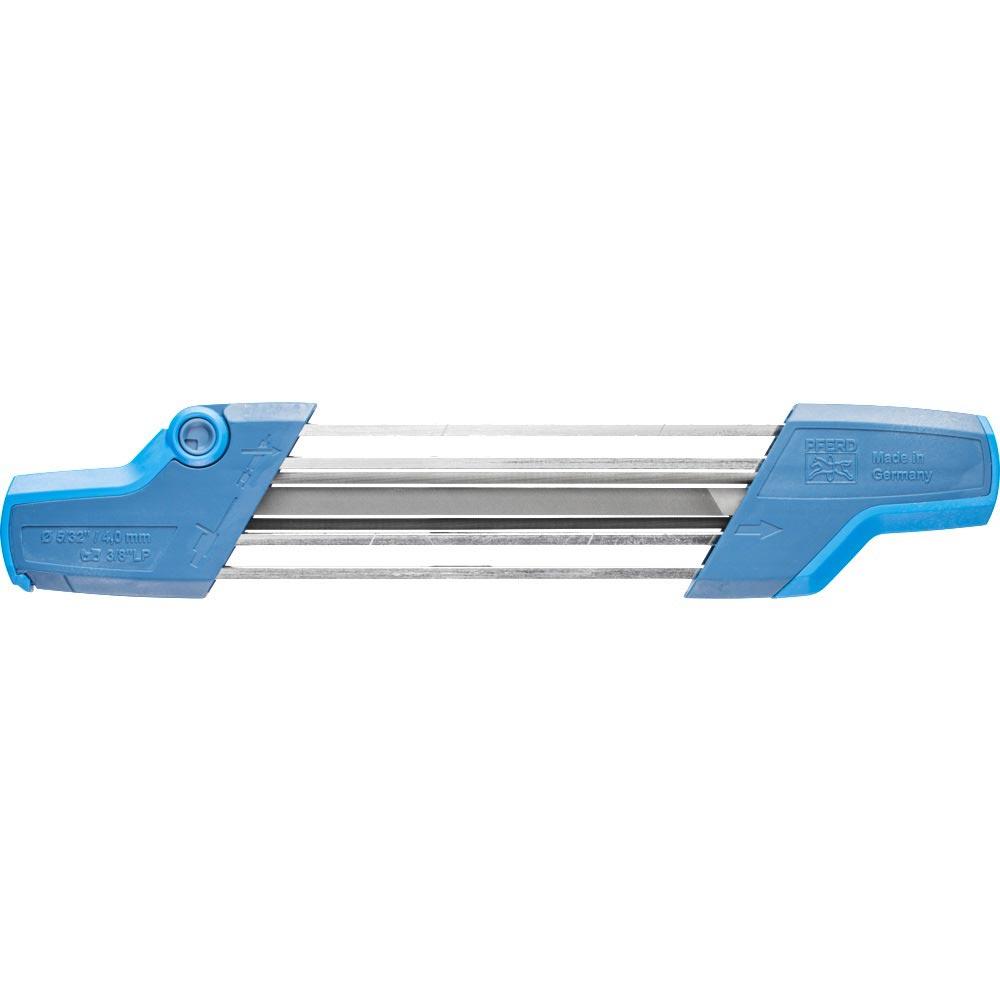 Das Kettensägeschärfgerät CHAIN SHARP CS-X überzeugt durch eine sehr gute Feilenlage, ergonomische Geräteform und einfachere Handhabung. Das Gerät gibt einen Schärfwinkel von 30° vor. · 6016982: für kleinere Sägeketten, die mit Kettensägenfeilen 4,0 geschärft werden können