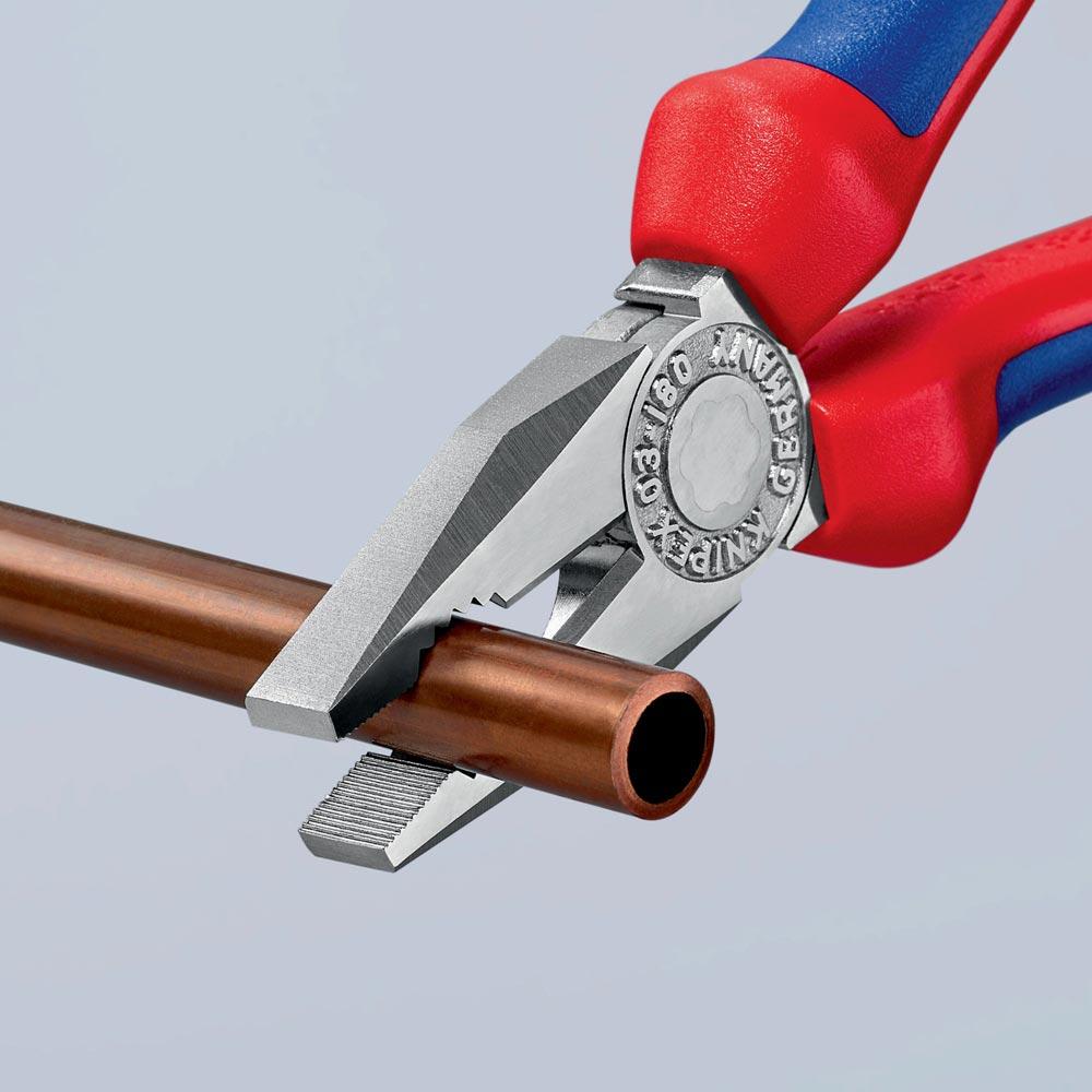 Greifzonen für Flach- und Rundmaterial · lange Schneiden für dickere Kabel · Schneiden zusätzlich induktiv gehärtet, Schneidenhärte ca. 60 HRC · Spezial-Werkzeugstahl, geschmiedet, mehrstufig ölgehärte