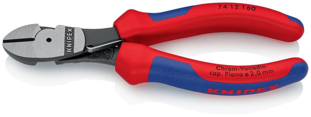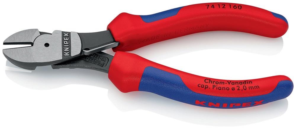 20 % Kraftersparnis gegenüber herkömmlichen Seitenschneider · mit Öffnungsfeder · Schneiden zusätzlich induktiv gehärtet, Schneidenhärte ca. 64 HRC · Chrom-Vanadin-Hochleistungsstahl, geschmiedet, mehrstufig ölgehärtet