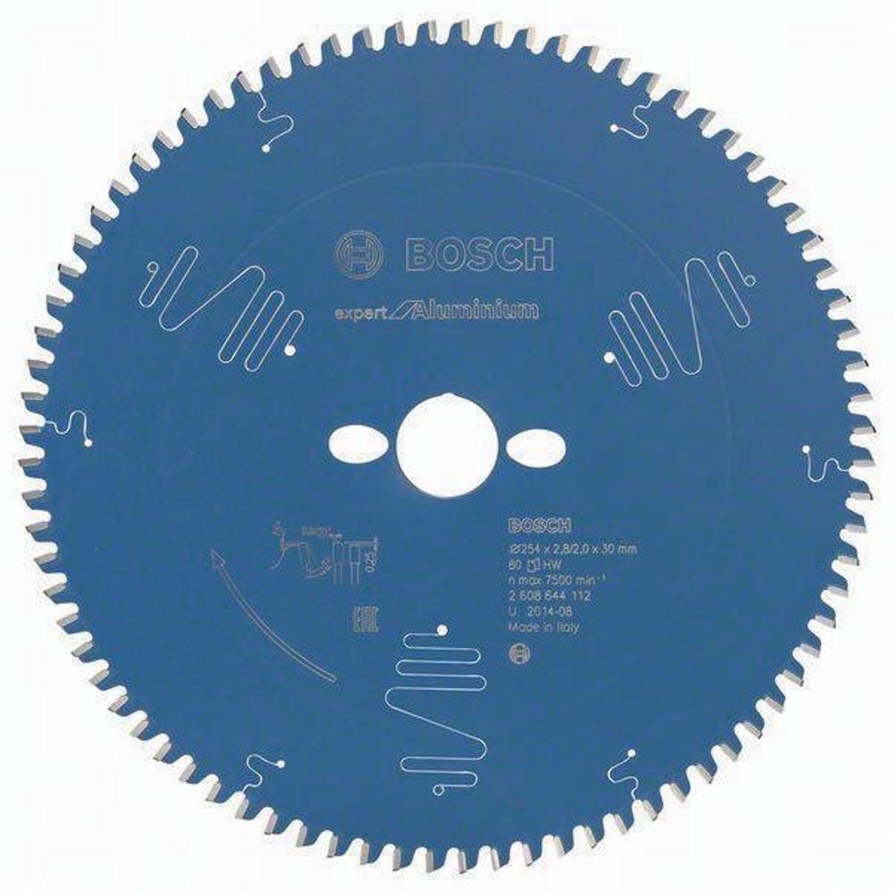 Kreissägeblatt Expert for Aluminium für Kapp- · Gehrungs- und Paneelsägen. Außendurchmesser: 254 mm · Bohrung: 30 mm · Schnittbreite: 2,8 mm · Stammblattstärke: 2,0 mm · Zähnezahl: 80. Das Expert for Aluminium Kreissägeblatt macht perfekte Schnitte in Nichteisenmetalle wie Aluminium. Auch geeignet zum Schneiden von Kunststoffen und Epoxy · rohen Spanplatten · Akustikplatten · Leichtbauplatten · abrasive ein- oder zweiseitig beschichtete Plattenwerkstoffe sowie Faserwerkstoffe wie MDF- und OSB-Platten. Einzigartige besonders harte Microteq-Zähne · die von Bosch intern produziert werden · werden aus sehr feinem Hartmetallkorn hergestellt · wodurch die Lebensdauer und Leistung des Blatts maximiert wird. Diese Leistung wird durch die Schutzbeschichtung des Blatts unterstützt · die Korrosion verhindert und zuverlässiges Schneiden ermöglicht · während Reibung reduziert wird. Das Produkt ist mit Dämpfungsschlitzen für einen besonders ruhigen Lauf · deutlich weniger Geräusche und spürbar geringere Vibration ausgestattet. Die Verwendung des Universalschneidöls 2 607 001 409 erhöht die Standzeit bei Schnitten in Metall · z. B. Aluminium · um ein Mehrfaches.