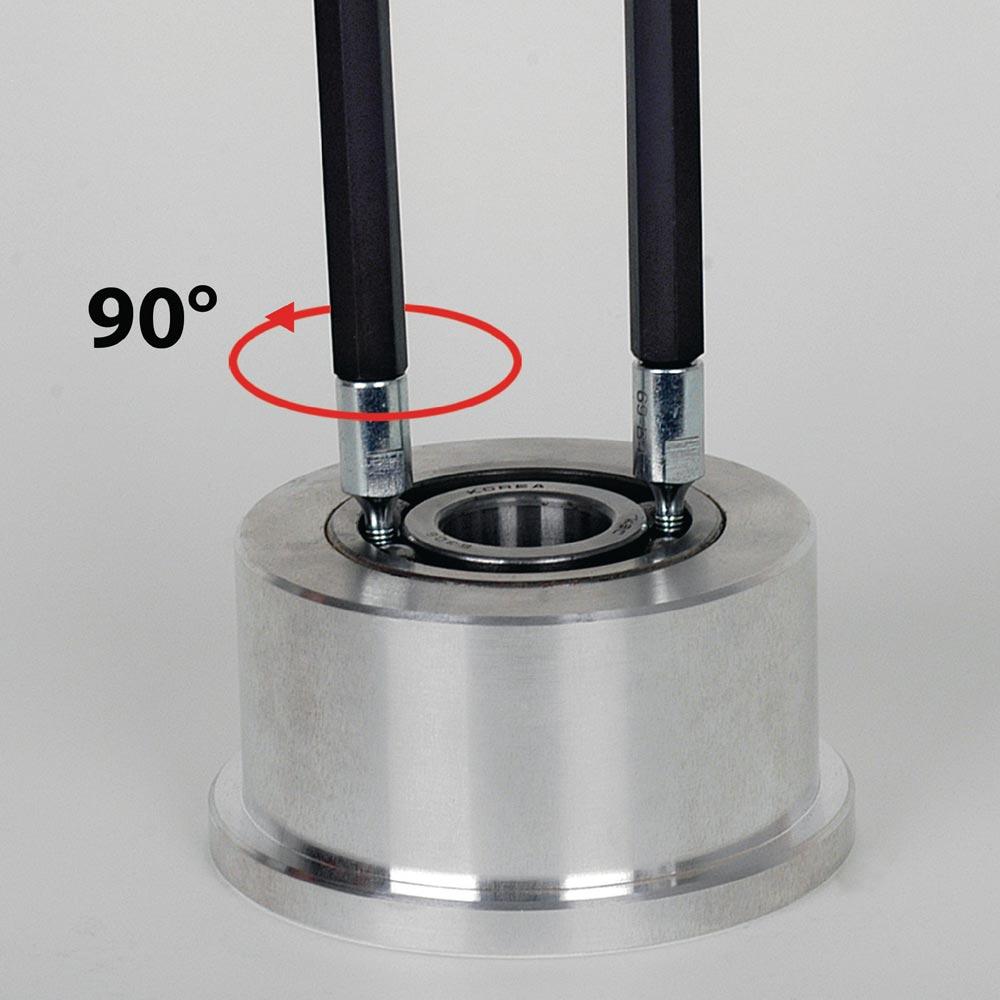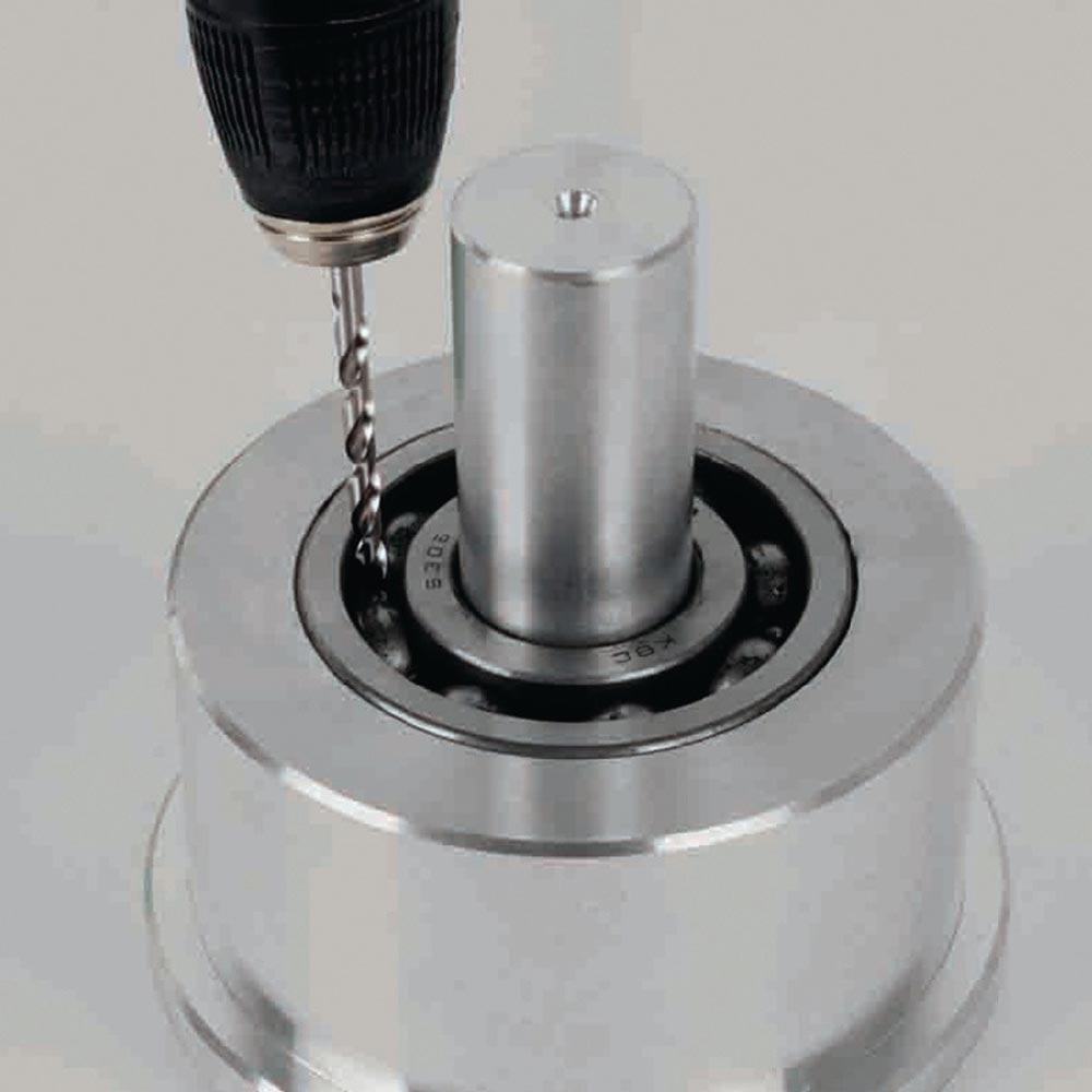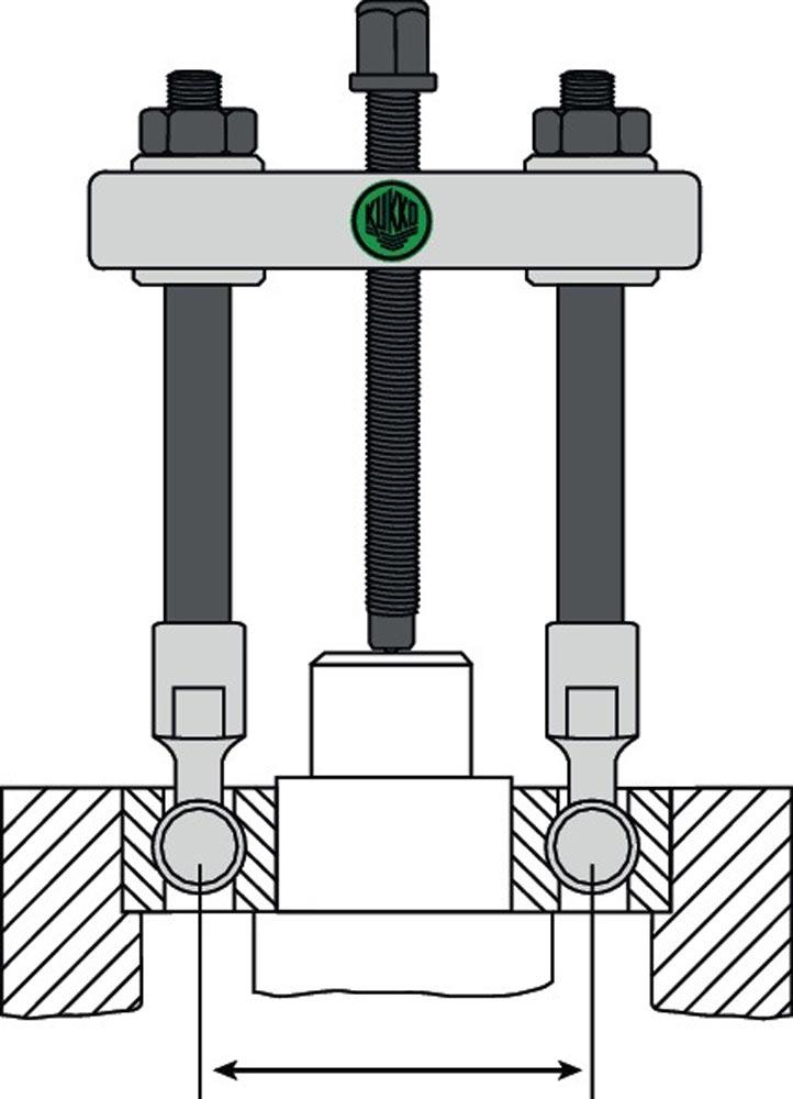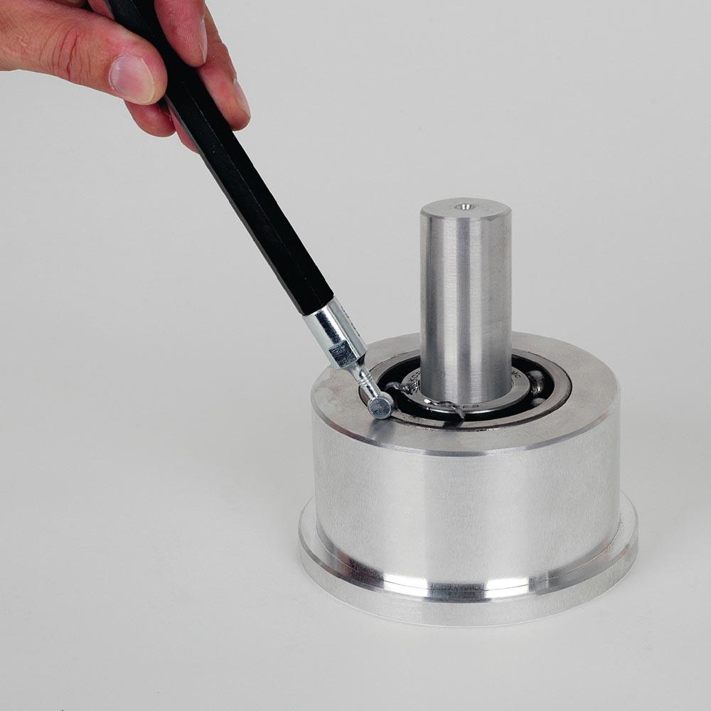 Das Abziehen erfolgt dann durch Anziehen der Druckspindel der Abziehvorrichtung gegen die Welle, auf der das Lager sitzt.