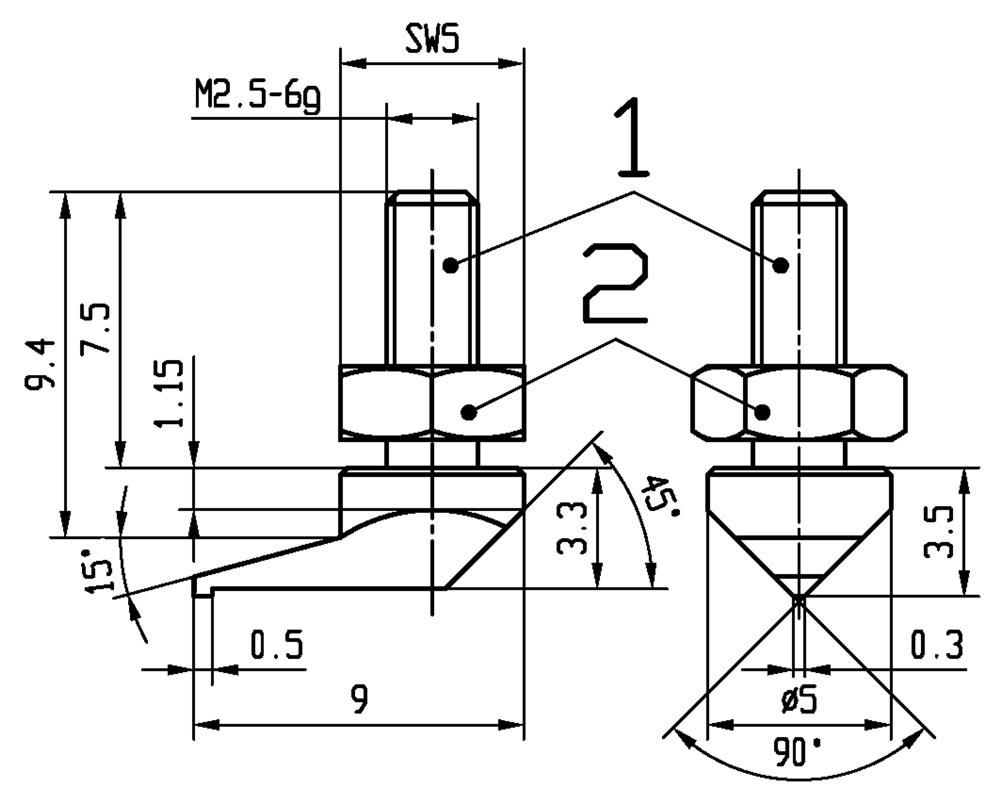 Produktinformationen "Messeinsatz seitliche Spitze M2,5 Stahl passend zu Messuhren"